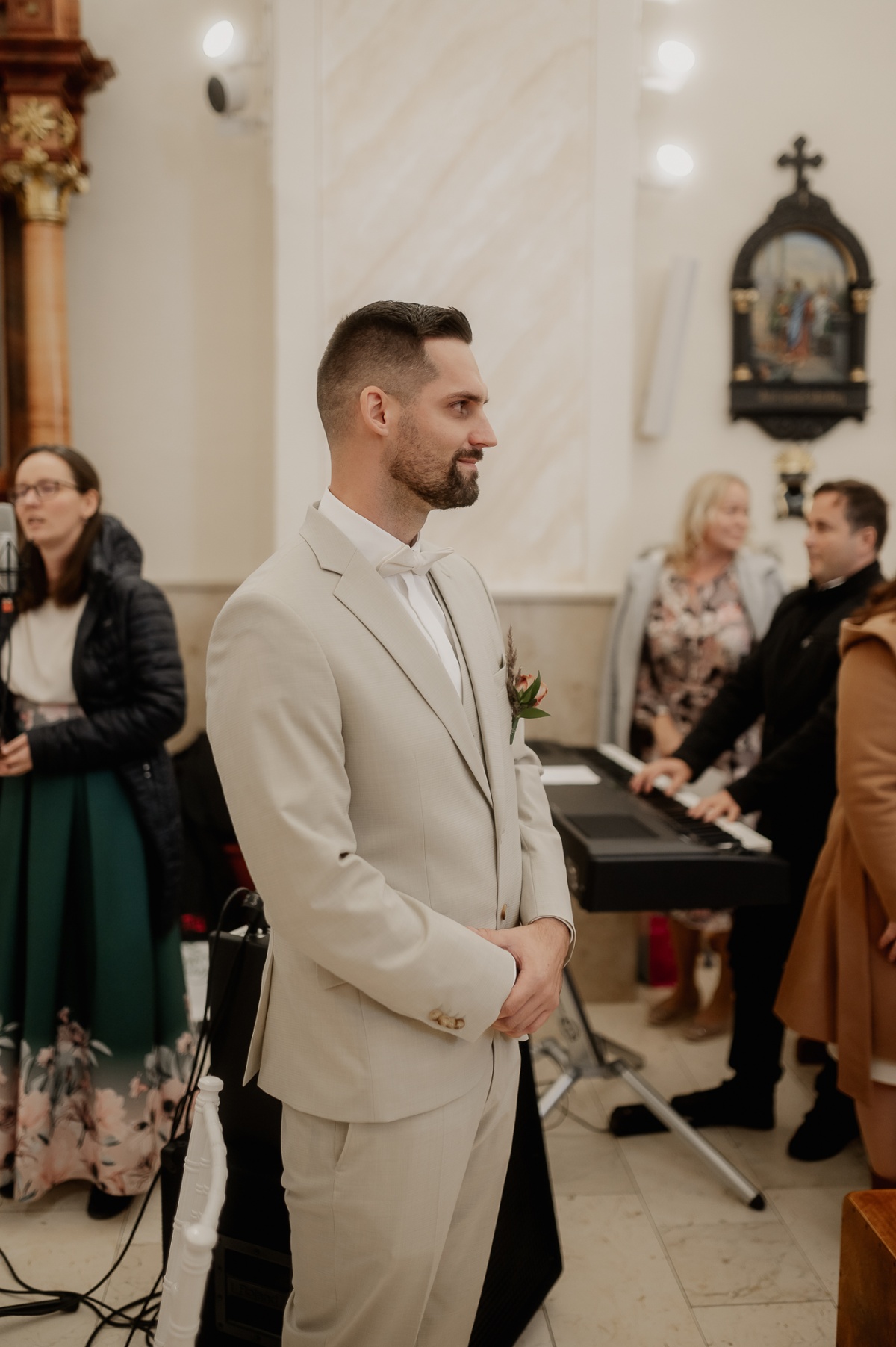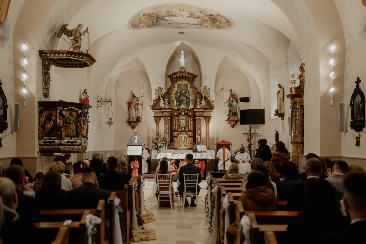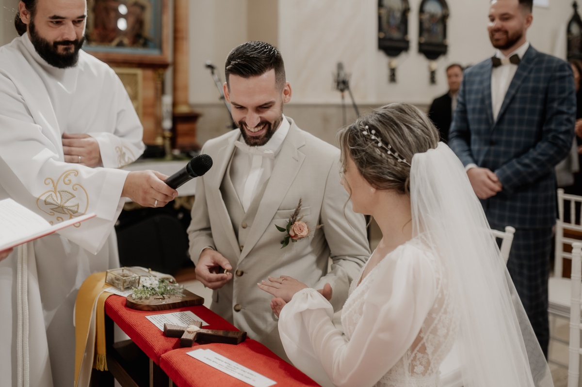 Počas svadby sa prirodzene začlenil medzi svadobných hostí a nerušene zachytával momenty nášho svadobneho dňa. Fotenie portrétov bolo uvoľnené, priateľské a máme z neho krásne spomienky.
