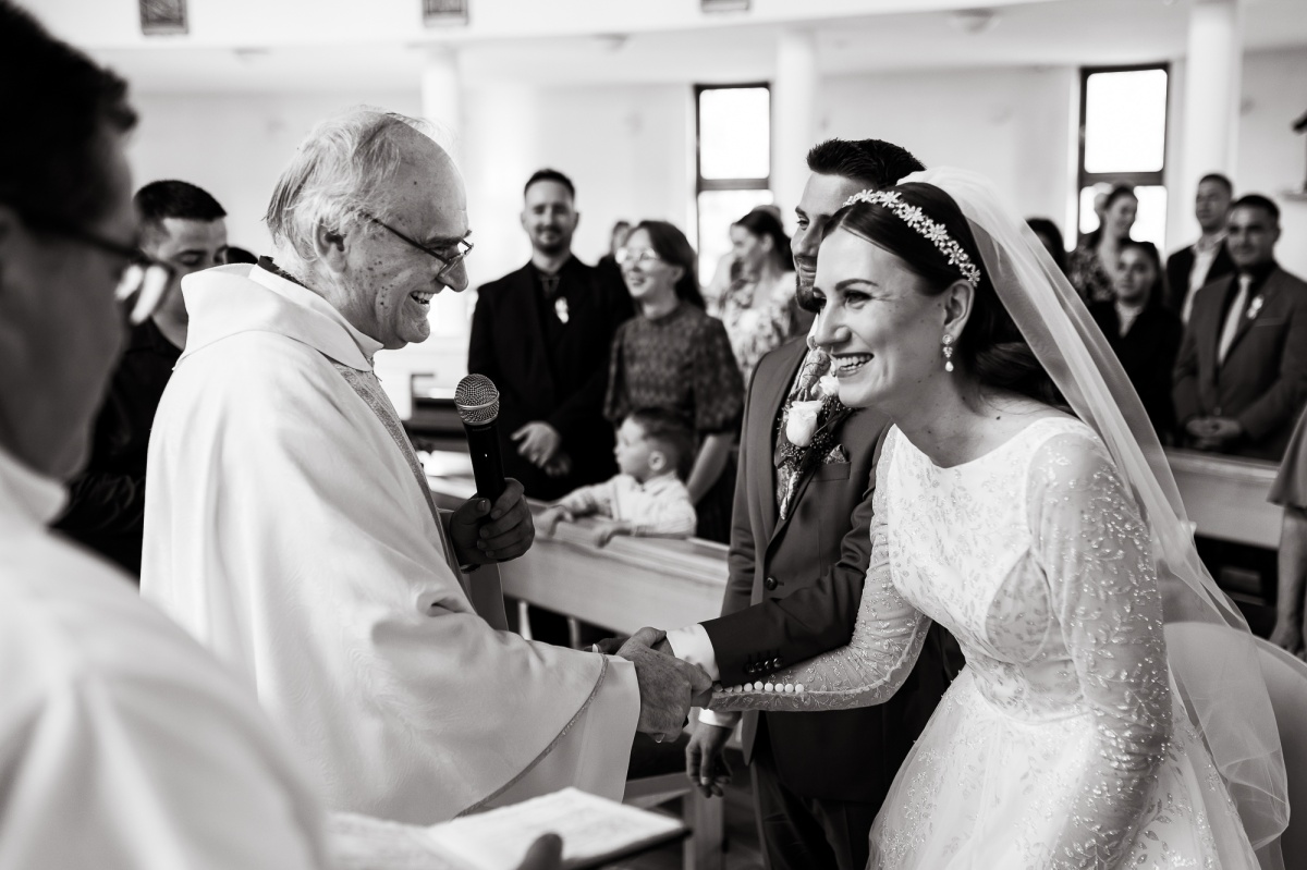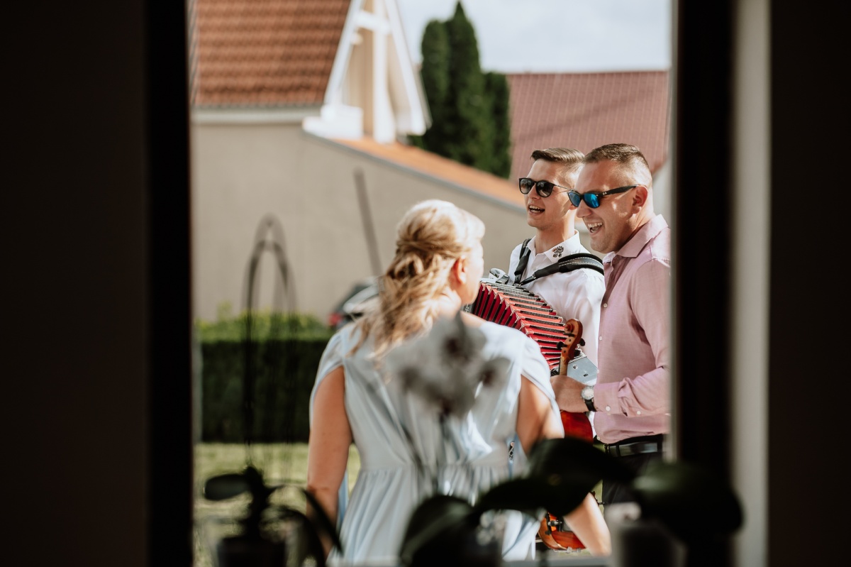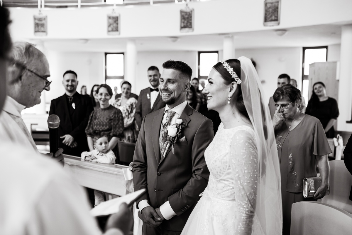 Počas svadby sa prirodzene začlenil medzi svadobných hostí a nerušene zachytával momenty nášho svadobneho dňa. Fotenie portrétov bolo uvoľnené, priateľské a máme z neho krásne spomienky.